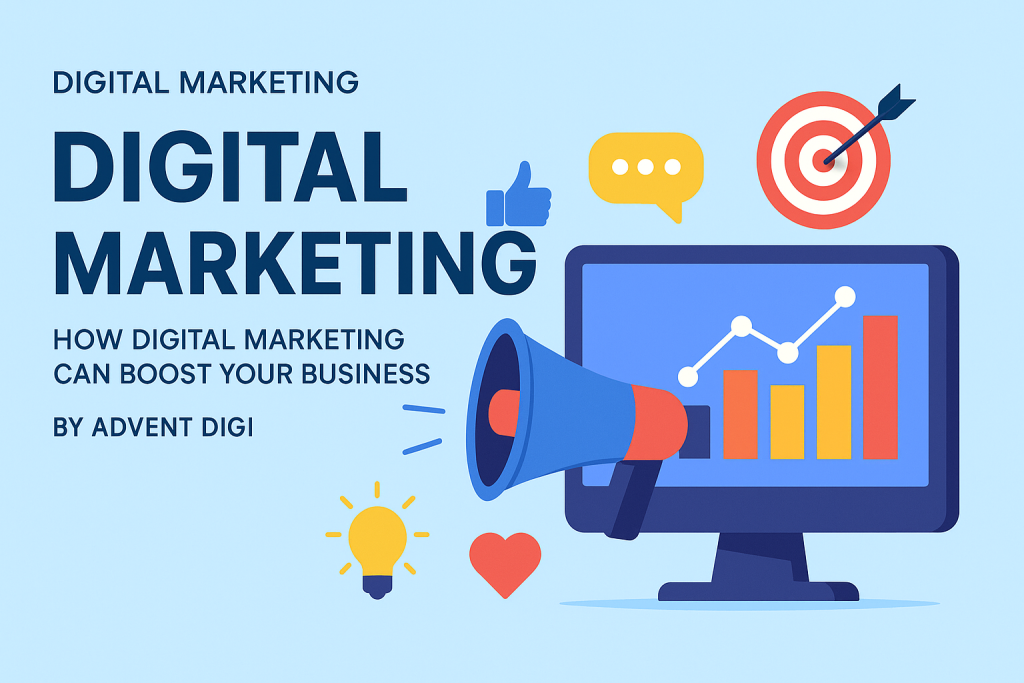 Digital Marketing is the modern approach to promoting products and services using online channels such as search engines, social media platforms, websites, emails, and digital advertisements. It helps businesses connect with their target audience in real time, build brand visibility, and increase customer engagement.